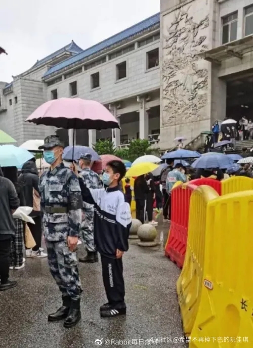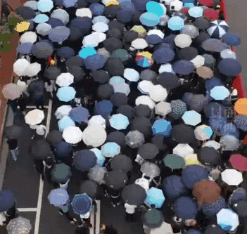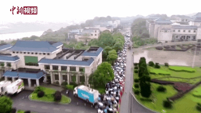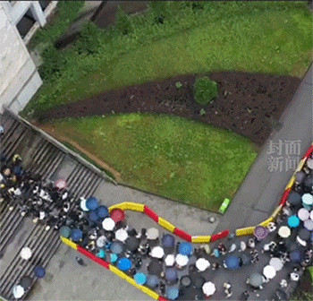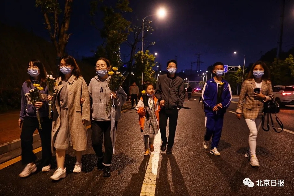 都安静地捧着菊花、稻子,有序地缓慢前进