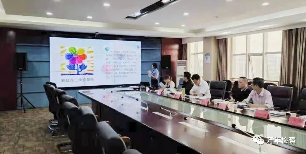 参观结束后,万年县人民检察院彩虹花工作室负责人介绍了近几年的未成年人工作,汇报人采用PPT形式,图文并茂,为各位代表展示了我院在预防未成年人犯罪、保护未成年人合法权益、落实“一号检察建议”、法治进校园、检企联建等工作方面作出的努力和成绩。