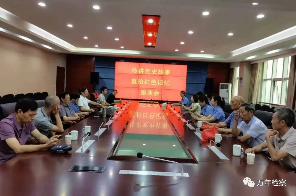 为庆祝中国共产党成立100周年,推动党史学习教育不断走向深入,近日,万年县人民检察院召开了“传讲党史故事,重拾红色记忆”座谈会。离退休党员干部与在职青年干警代表参加了座谈