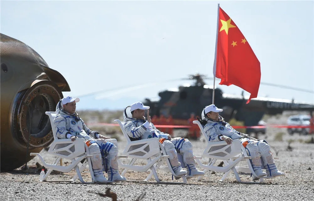 神舟十二号载人飞船返回舱在预定区域成功着陆。在太空驻留3个月的航天员聂海胜、刘伯明、汤洪波安全顺利出舱,中国载人航天空间站阶段首飞完美收官。