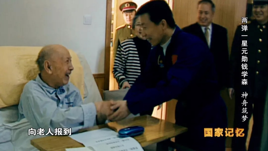 完成太空首飞任务的杨利伟专程向钱学森报到