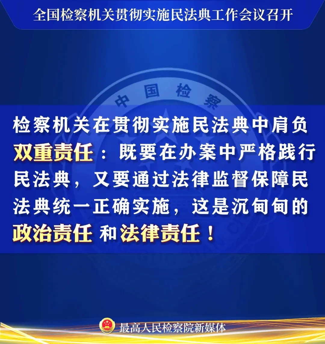 民法典正式实施在即,12月7日,最高检召开全国检察机关贯彻实施民法典工作会议,对检察机关贯彻实施民法典工作提出新要求,释放重要信息。一组海报划重点!