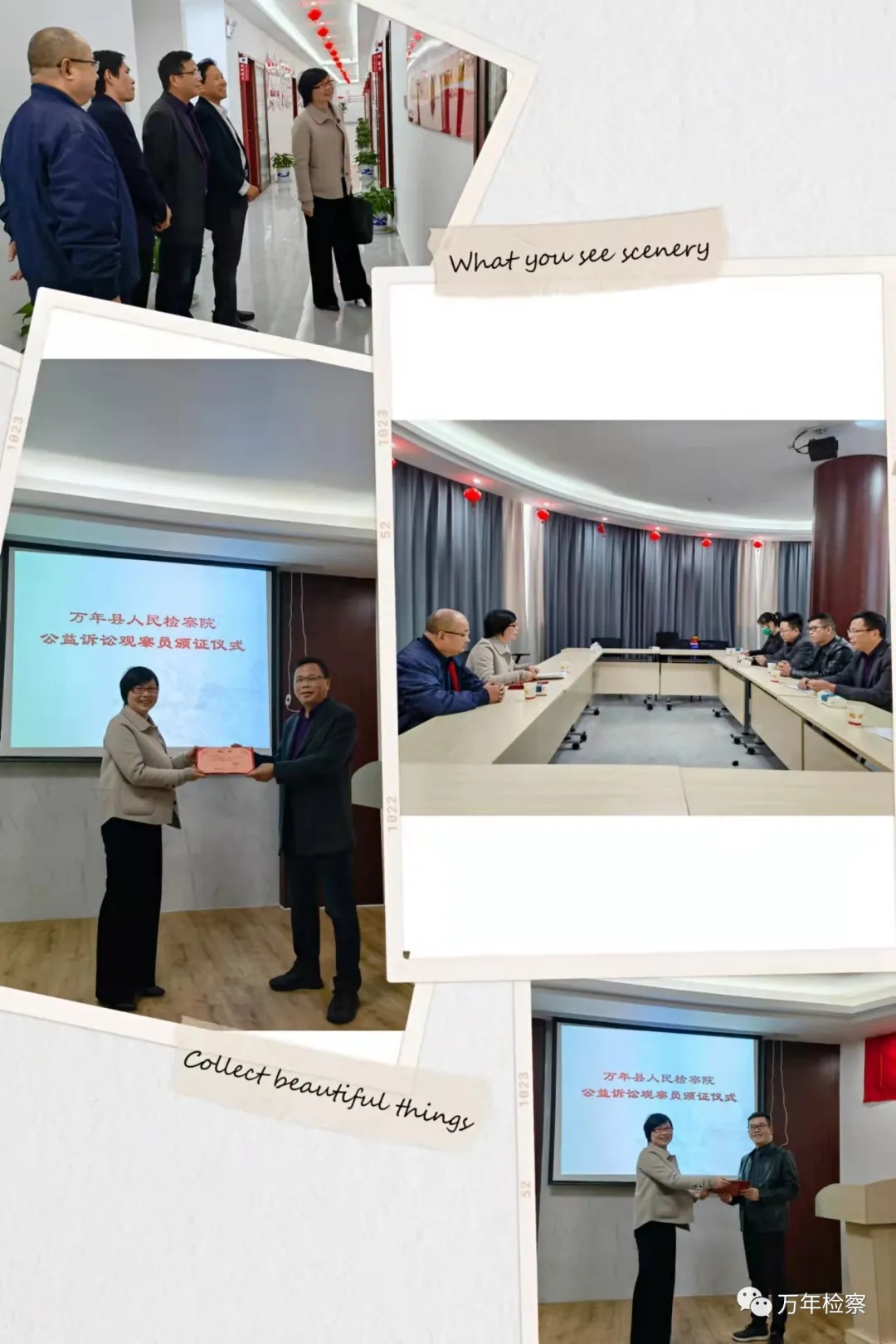 近日,万年县人民检察院党组书记、检察长方金枝向首批聘任的8名公益诉讼观察员颁发聘书,并就公益诉讼的受理范围、办案流程等结合相关案例进行了介绍。同时方金枝强调:“成为公益诉讼观察员后,一定要发挥个人专业特长,破除检察办案中遇到的专业知识壁垒,进一步提升公益诉讼办案的质量水平;同时,将外部监督嵌入检察执法办案,这样既增强司法透明度,又保障严格公正文明司法。”