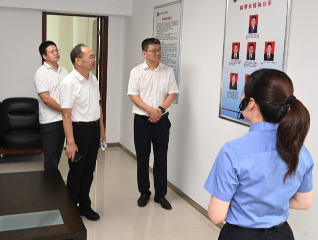 王学斌代表(左二)到山东省临沂市河东区检察院专题调研该院公益诉讼检察工作。