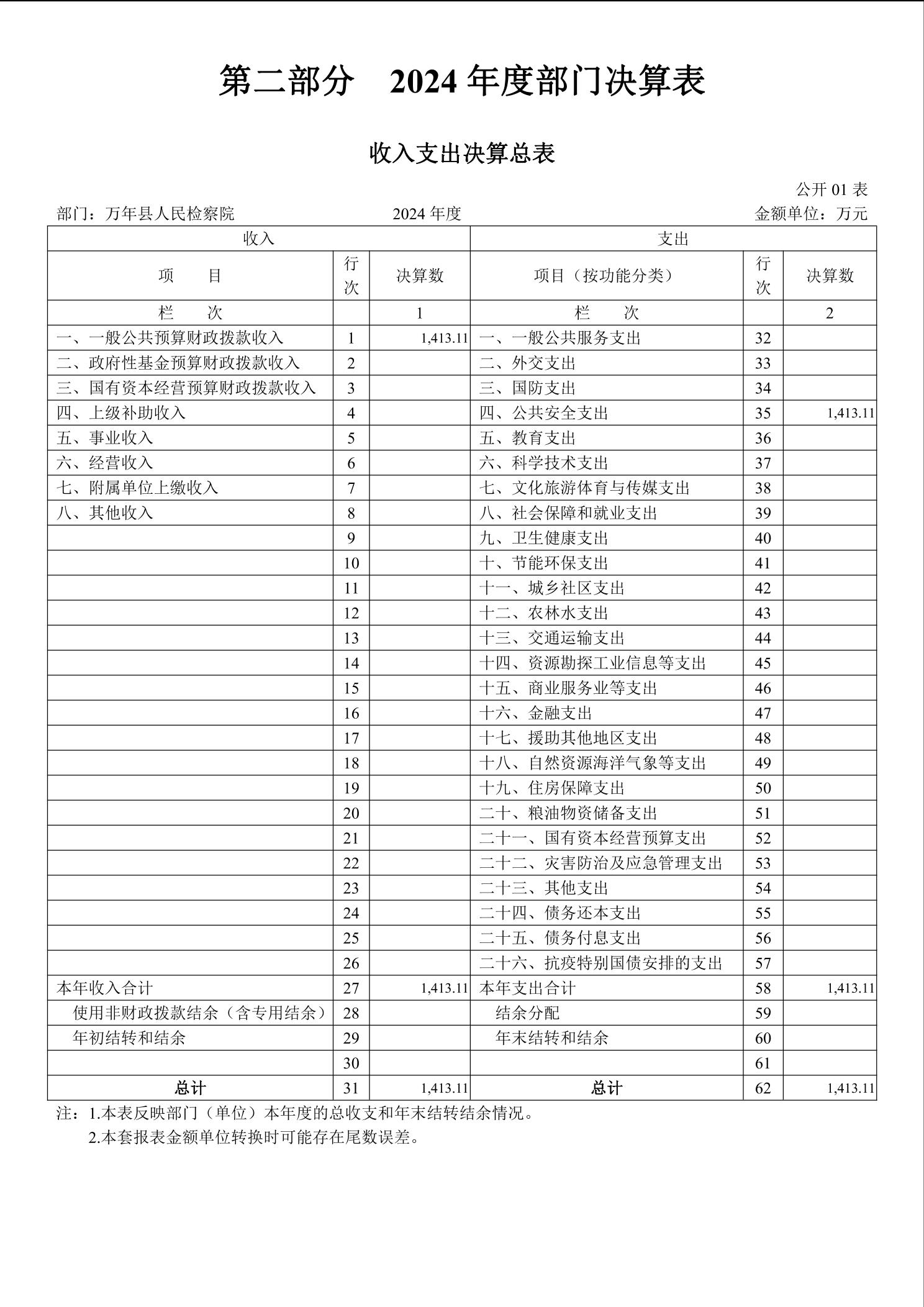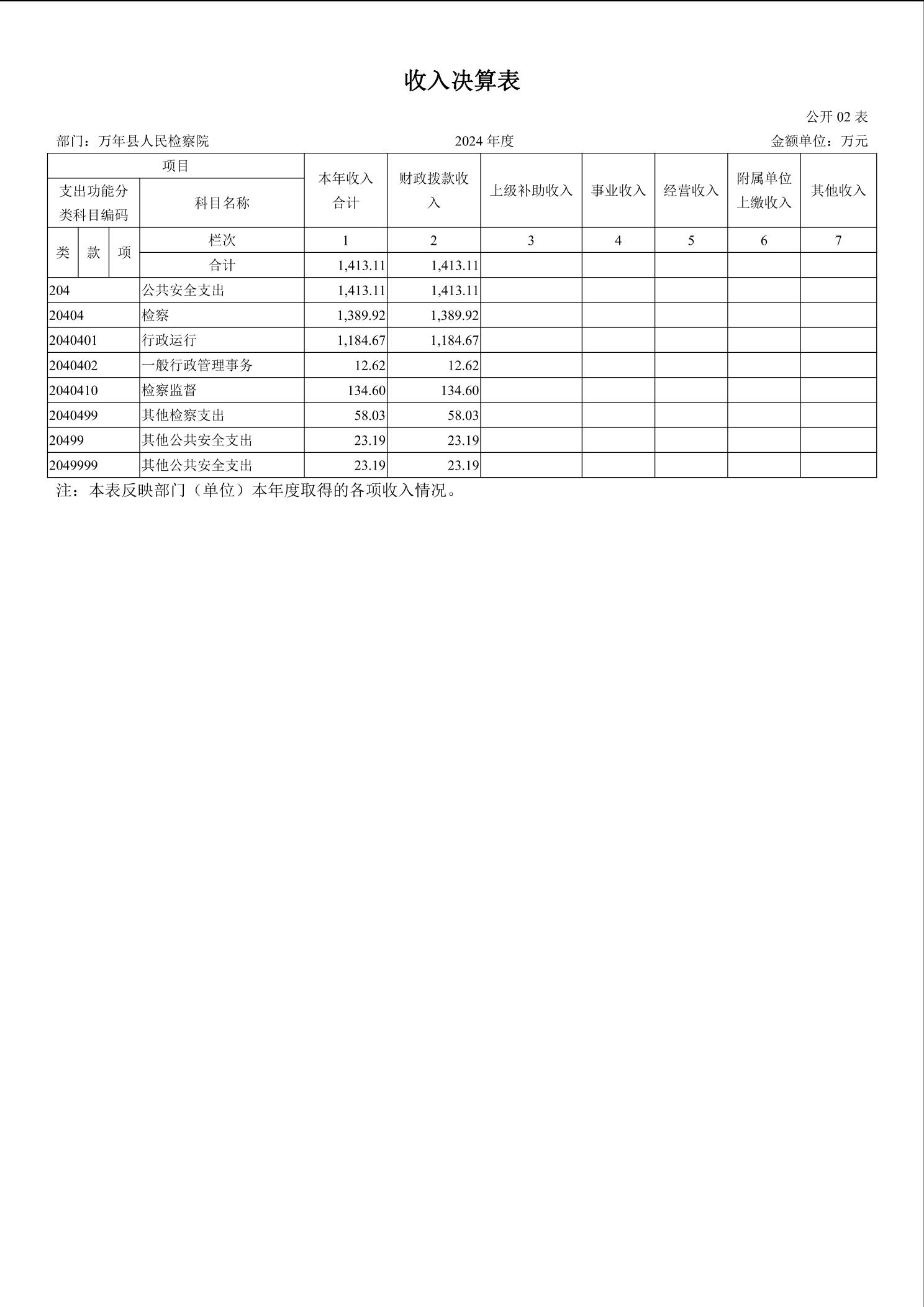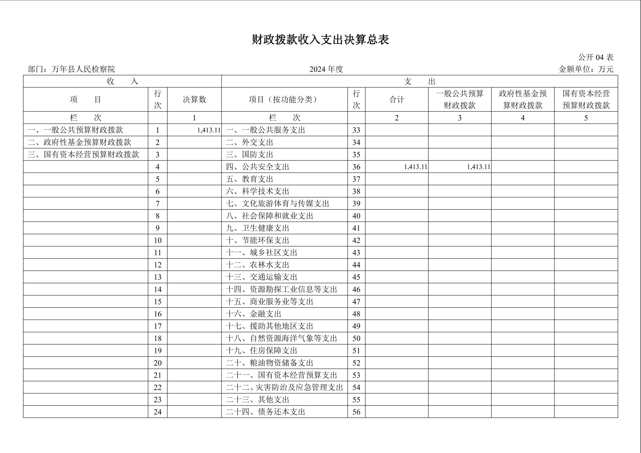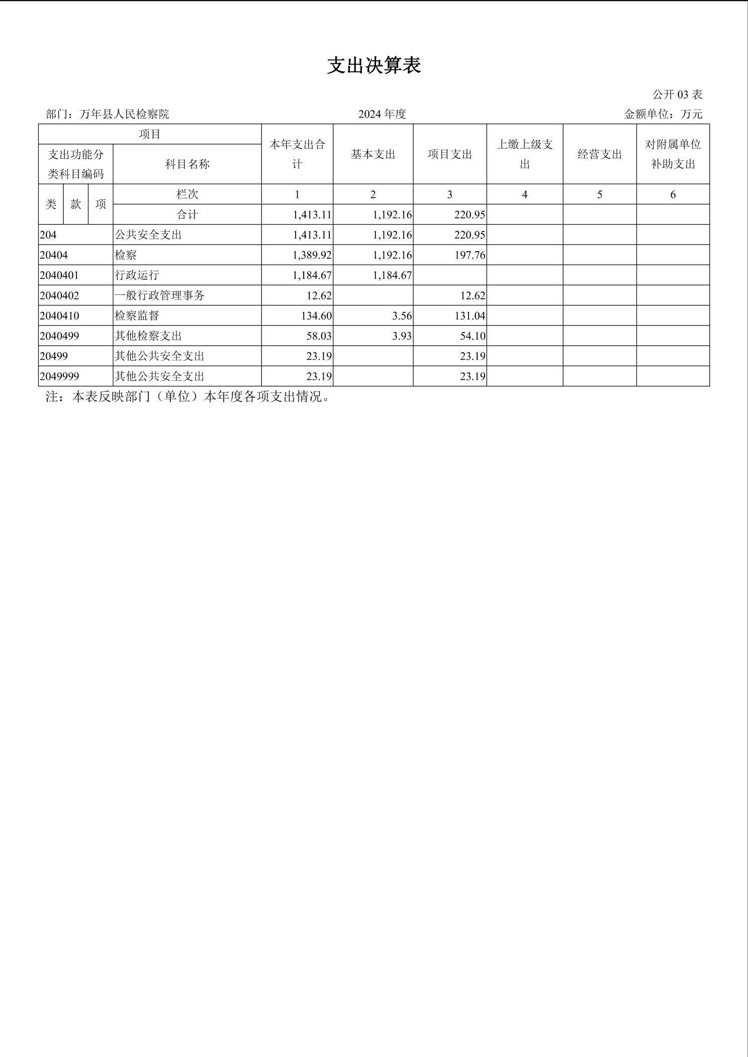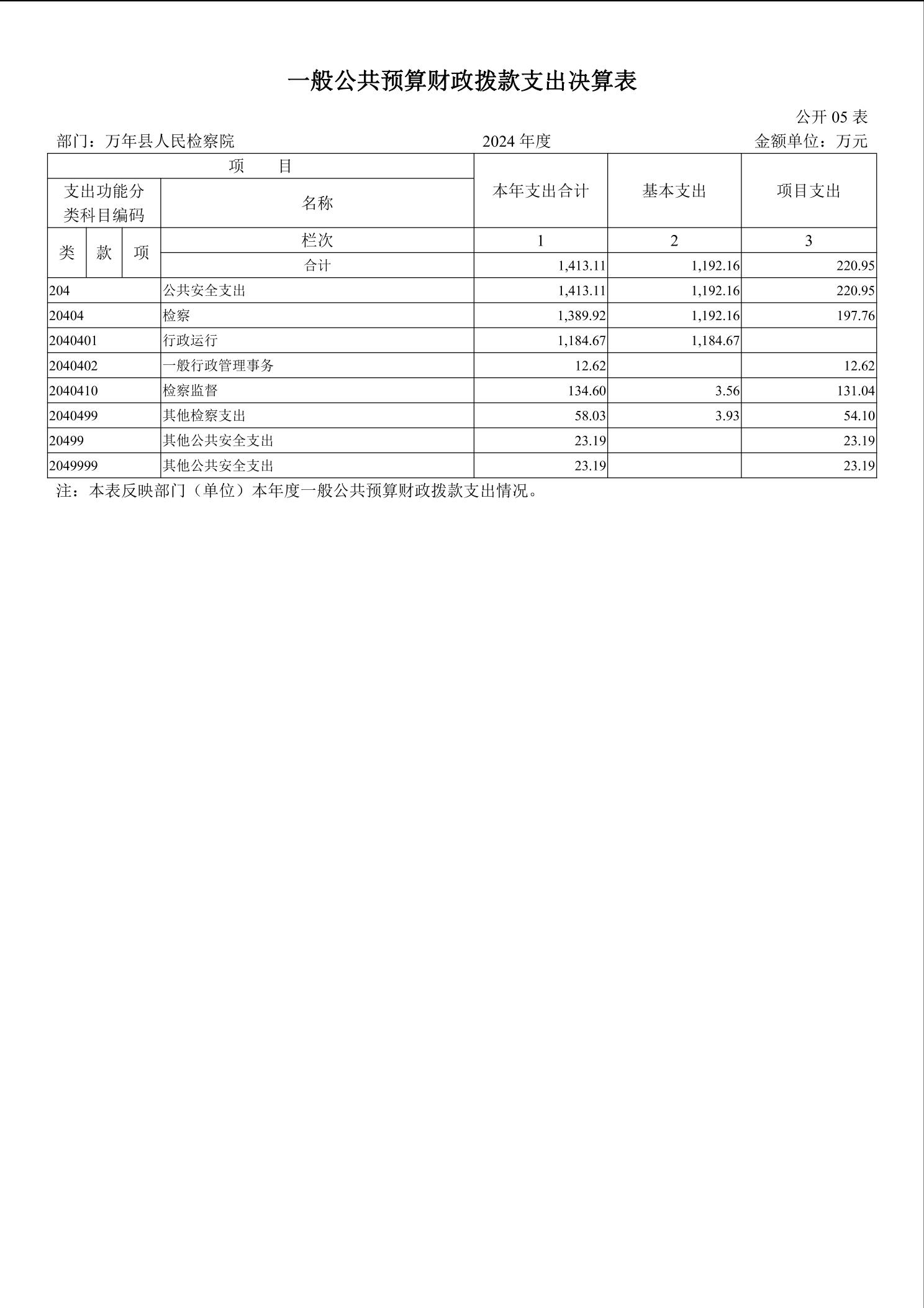 上饶市万年县人民检察院2024年部门决算信息公开表