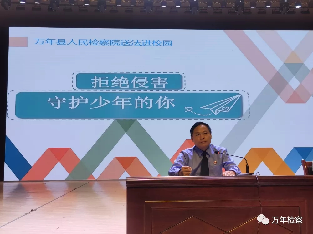 为进一步落实推进“一号检察建议”,优化校园环境,减少校园欺凌与校园暴力,培养广大师生明辨是非、崇德重法的法律意识。10月16日上午万年县人民检察院在万年县会展中心给万年县中等专科学校的新入学的九百多名学子上了一堂“拒绝侵害,守护少年的你”专题法治课。