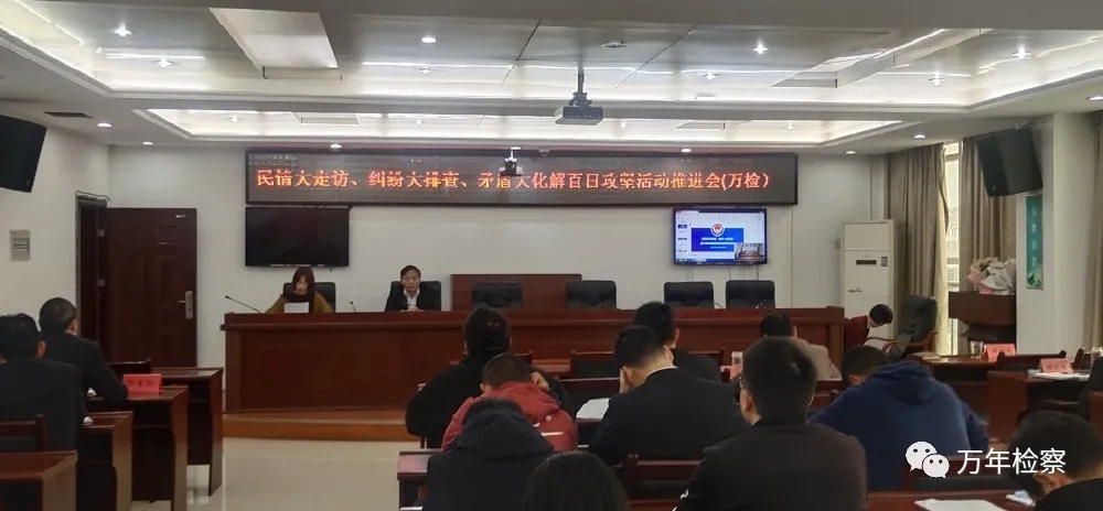 为推动“民情大走访、纠纷大排查、矛盾大化解百日攻坚”活动向纵深发展,10月28日,万年县人民检察院召开“民情大走访、纠纷大排查、矛盾大化解百日攻坚”活动推进会,副检察长蔡阳先主持会议,全体检察干警参加会议。