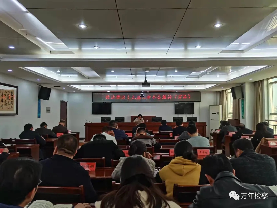 会议要求,要坚持以习近平新时代中国特色社会主义思想为指导,把学习贯彻党的十九届六中全会精神的成效转化为推动新时代万年检察工作高质量发展的强大动力和实践成果。强化责任担当,切实做好新时代发展阶段检察工作的责任感紧迫感,以更加奋发有为的精神状态,更好履行检察监督职能。