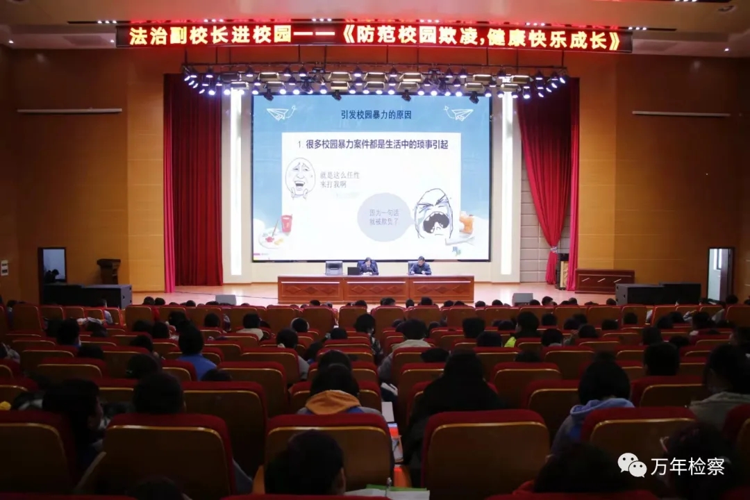 为营造浓厚的学法、知法、懂法、自觉守法氛围,进一步增强青少年法治意识。近日,万年县人民检察院开展“宪法宣传日法治进校园活动”。法治副校长走进万年一中开展“防校园欺凌,健康快乐成长”为主题的法律知识进校园活动,万年一中师生300余人聆听了讲座。