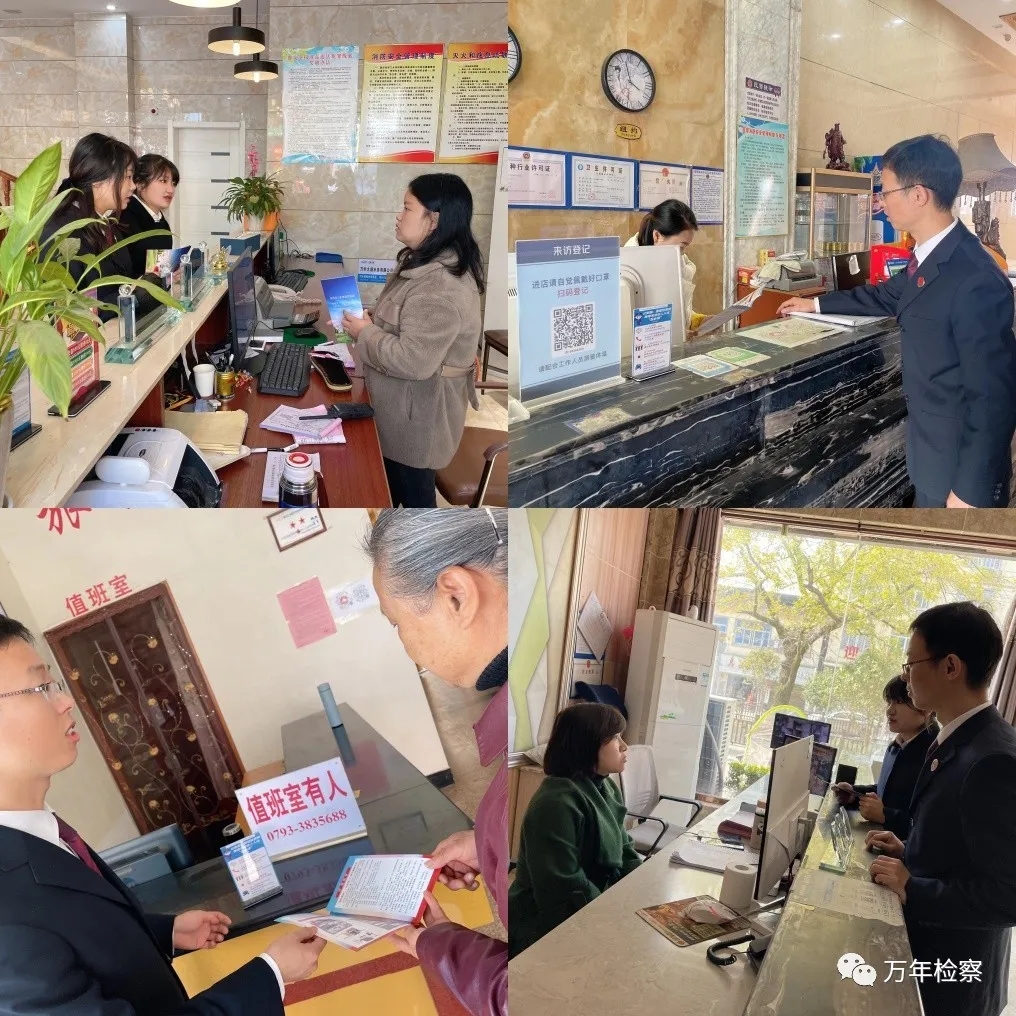 “在办理多起性侵害未成年人案件中发现,案发地点有七成以上均在宾馆”,我们发现部分酒店、宾馆存在多个监管漏洞,包括违规接待未成年人、未履行登记、询问义务等问题。针对这类问题,检察官带着印发好的未成年人受侵害强制报告宣传手册进行实地宣传,要求旅馆从业人员遵守“三询问一报备”规定,即询问相互关系、登记入住宾馆目的、监护人是否知情,一旦发生异常情况及时向属地派出所报备。