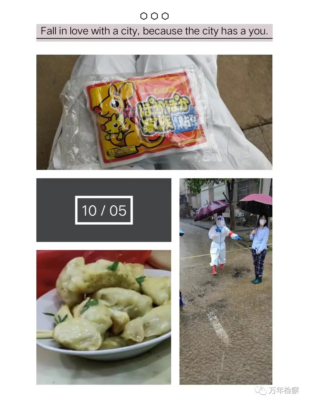 万年县人民检察院4名志愿者连续多日暖心守护在马塘社区,在凌晨、在雨中、在困难群众的家中……他们辛苦的付出群众看到了眼里、记到了心里,纷纷送上暖心慰问,有御寒的暖贴、热气腾腾的饺子、暴雨中的雨伞……