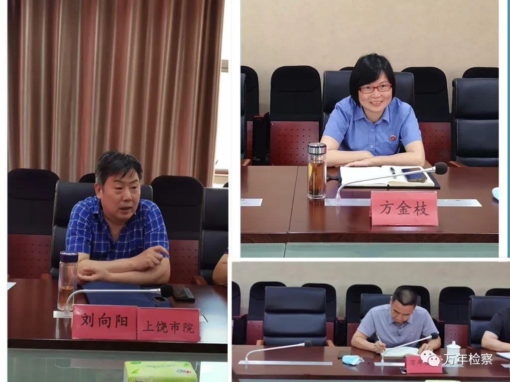 2022年6月23日下午,上饶市人民检察院党组成员、检委会专职委员刘向阳带队来我院召开民事行政检察工作片区指导会,对民行检察工作尤其是行政争议实质性化解工作开展调研指导。万年县人民检察院检察长方金枝带队参会,鄱阳县院、余干县院、广信区院、弋阳县院相关负责人员参会,万年县人民法院行政庭张仁忠庭长特邀参会。