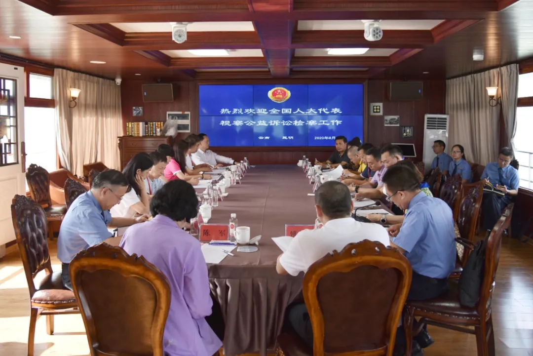 在船上,代表们观看了检察蓝守护昆明绿的视频录像,听取了全国检察机关公益诉讼检察工作情况报告。
